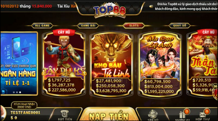 Một trong những thế mạnh nổi bật của Top88 chính là danh mục trò chơi phong phú, bao gồm nhiều siêu phẩm đổi thưởng và cá cược hấp dẫn. Từ game bài truyền thống, slot game hiện đại cho đến các trò chơi cá cược có tỷ lệ thưởng cao, tất cả đều được tuyển chọn kỹ lưỡng nhằm đảm bảo chất lượng và tính công bằng. Ngay cả những hội viên mới cũng có thể nhanh chóng làm quen, nắm bắt luật chơi để tham gia trải nghiệm và chinh phục các mức thưởng giá trị.